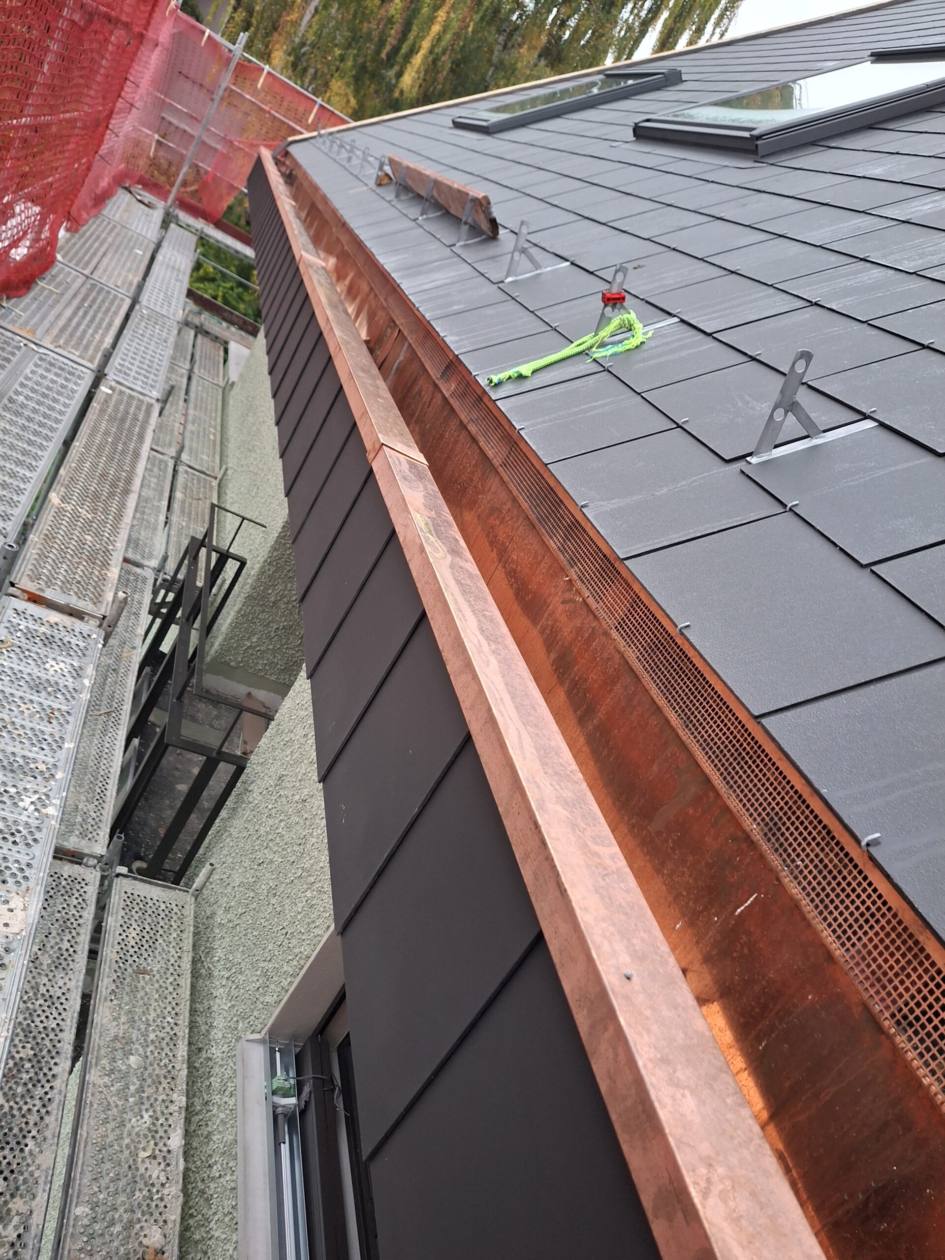 Montáž kompletních okapových systémů včetně svodů a detailů napojení.